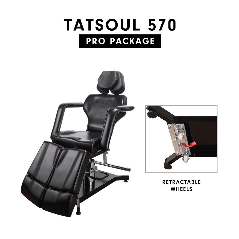 The 570 Client Chair by TATSoul exists at the cutting edge of tattoo furniture design. The customer comfort offered by the 570 Client Chair is matched only by its versatility; the 570 provides ergonomic support to clients while sitting, laying down, or straddling. Every foot rest, leg rest, and headrest is independently adjustable to customize the tattooing experience for each client. The luxurious cushioning system is upholstered with smooth PVC vinyl to ensure clients are calm and comfortable throughout the duration of their session.