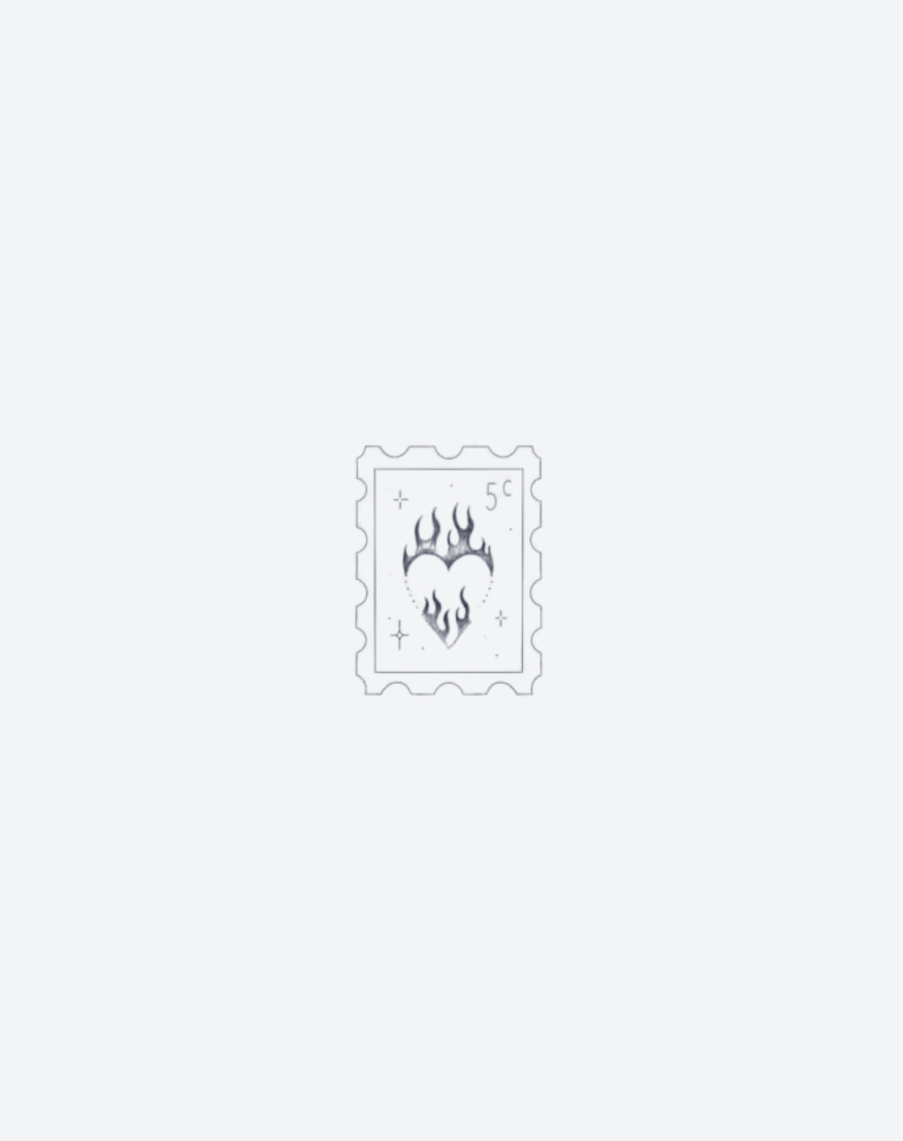 Flame Mail is a 2×3 inch design by @brooketattoos, featuring a bold heart engulfed in flames, framed within the outline of a vintage postage stamp. Accented with stars and a “5¢” detail, the piece blends nostalgia with passion, as if sending a letter sealed in fire. This 1–2 week EZINK temporary tattoo symbolizes love that transcends distance, intensity that can’t be contained, and the timeless act of wearing your heart proudly.