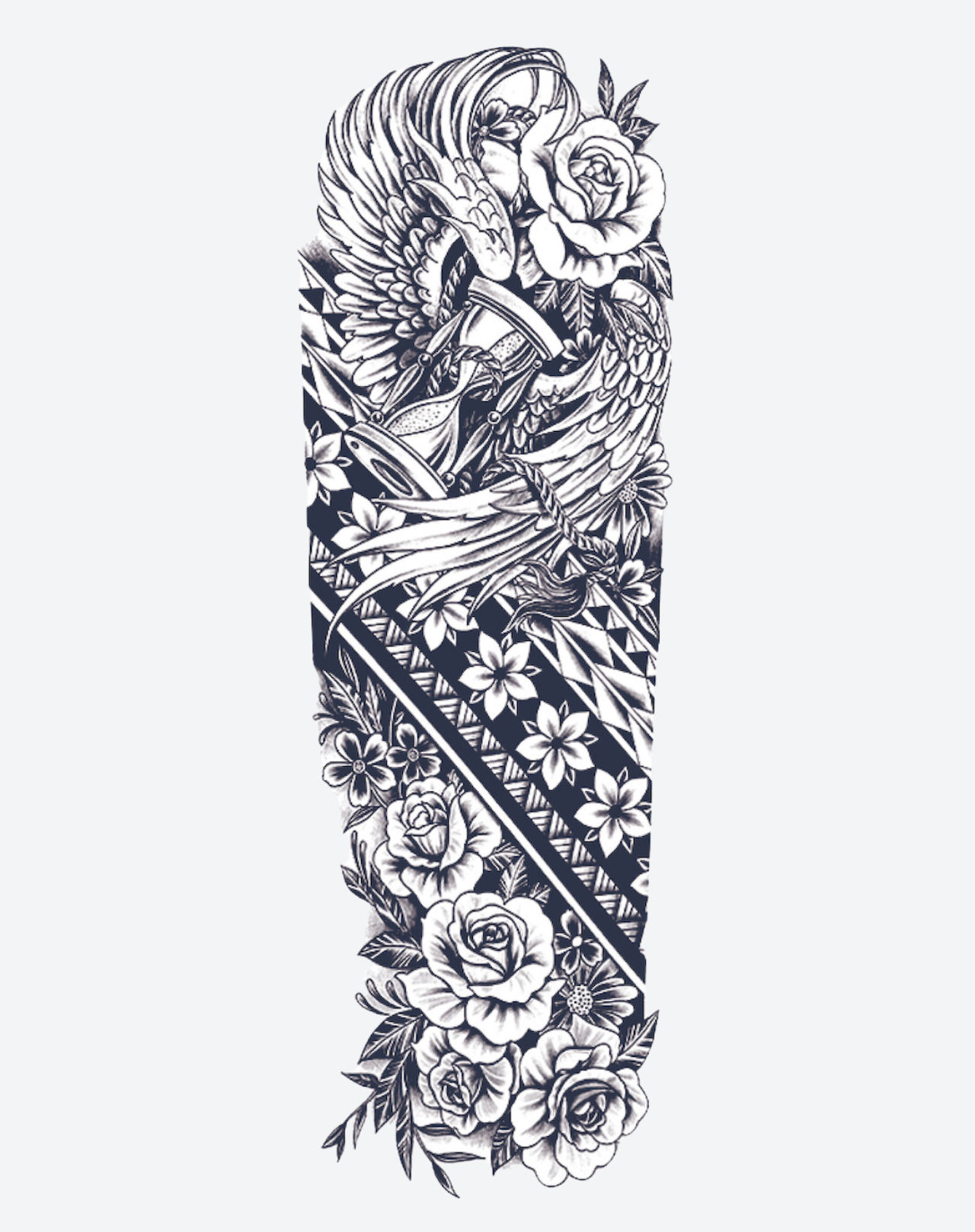 Embrace nature’s beauty and tribal artistry with our Floral Tribal Sleeve temporary tattoo! This captivating 7×19-inch design features intricate floral patterns intertwined with tribal elements, creating a bold and enchanting look. Lasts 1-2 weeks, perfect for testing your wild and free style before committing to a permanent tattoo.