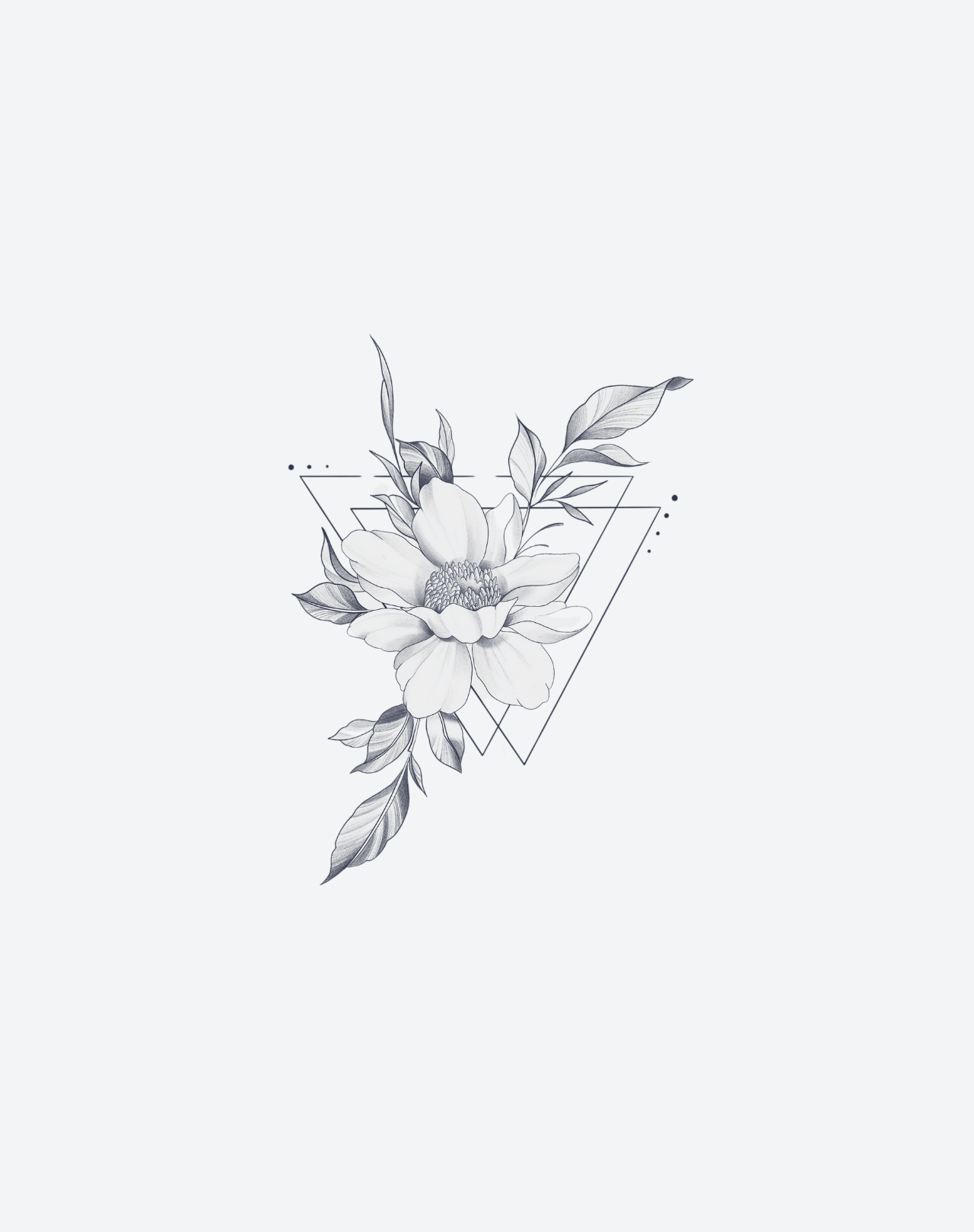 Garden of Symmetry is a balanced 6.5×6.5 inch design that merges organic bloom with ornamental precision. Radiating petals and mirrored foliage form a harmonious composition where nature meets geometry. Created by @ivy_tattooist, this EZINK temporary tattoo lasts 1–2 weeks, perfect for those who find beauty in structure, stillness, and the rhythm of floral symmetry.