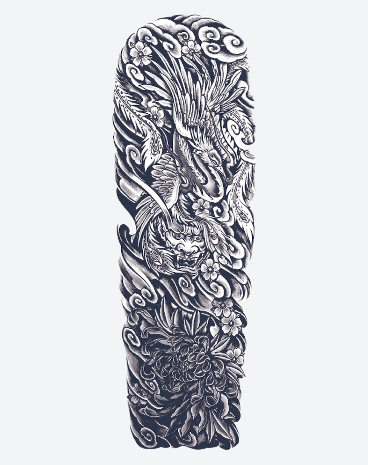 Embark on a journey of rebirth and strength with our Phoenix and Oni Sleeve temporary tattoo! This expansive 7×19-inch design features a powerful Phoenix rising from flames on one side, symbolising renewal and transformation, while the Oni demon on the other side represents resilience and protection. Lasts 1-2 weeks, perfect for testing your bold and mythical style before committing to a permanent tattoo.