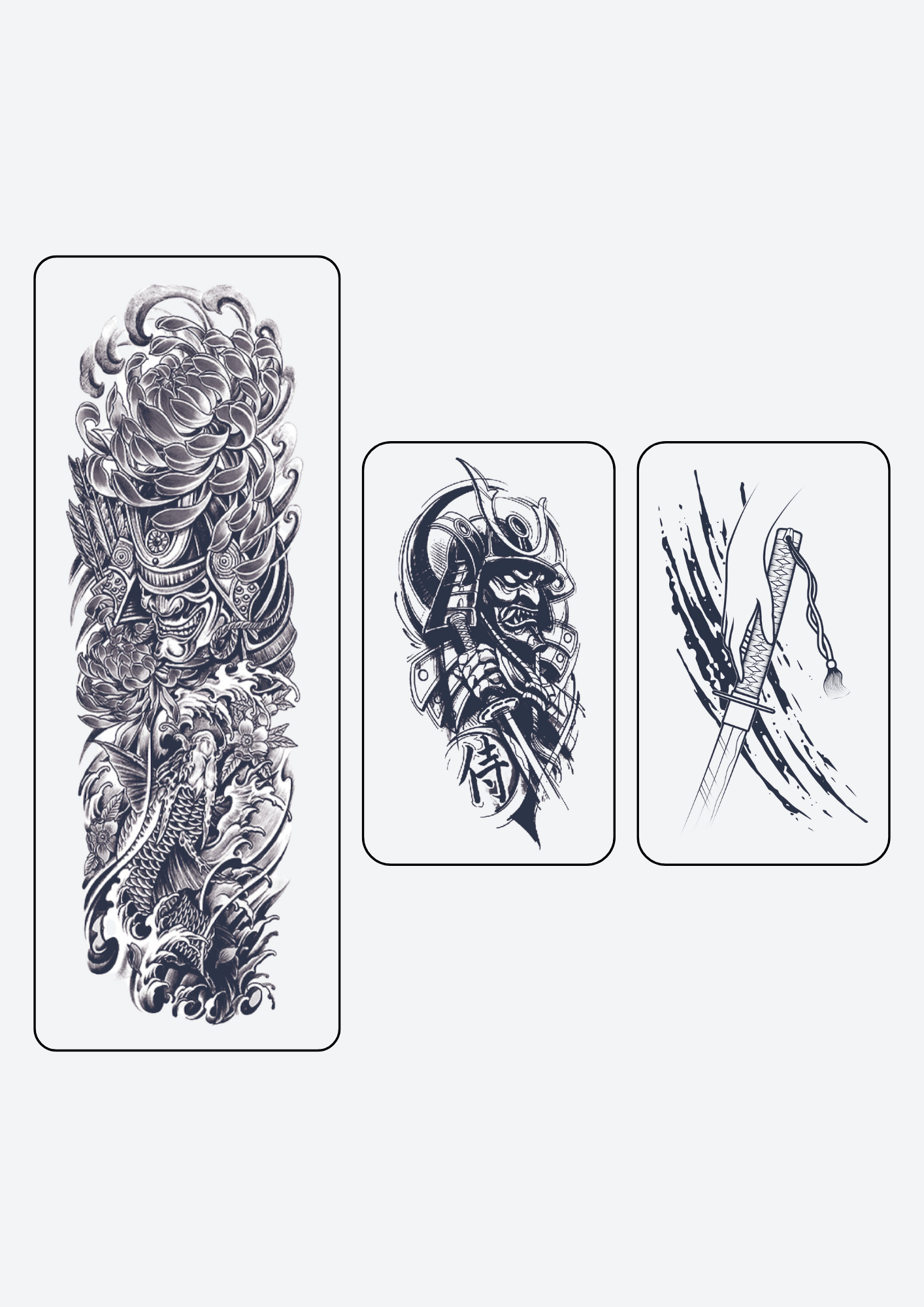 Unleash your inner warrior with our Samurai Pack! This EZINK temporary tattoo pack features two 4×7 inch tattoos and a 7×19 inch sleeve, all with stunning Samurai themed designs. Perfect for adding a touch of boldness and strength to your look. Channel the spirit of the samurai and make a statement with our Samurai Pack!