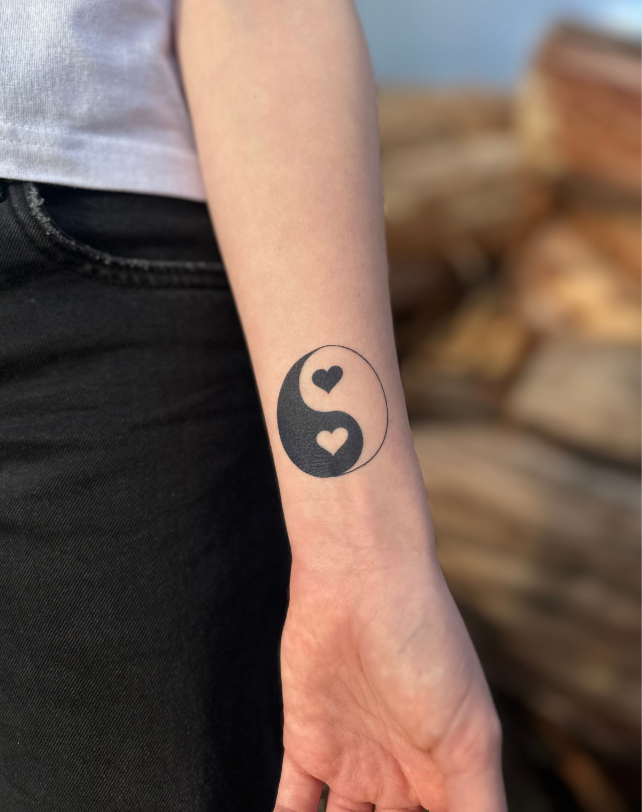 Celebrate balance and affection with our Yinyang Love temporary tattoo! This charming 2×2-inch design features a yin yang symbol with hearts, symbolising harmony and love. Lasts 1-2 weeks, perfect for showcasing your romantic side before committing to a permanent tattoo.